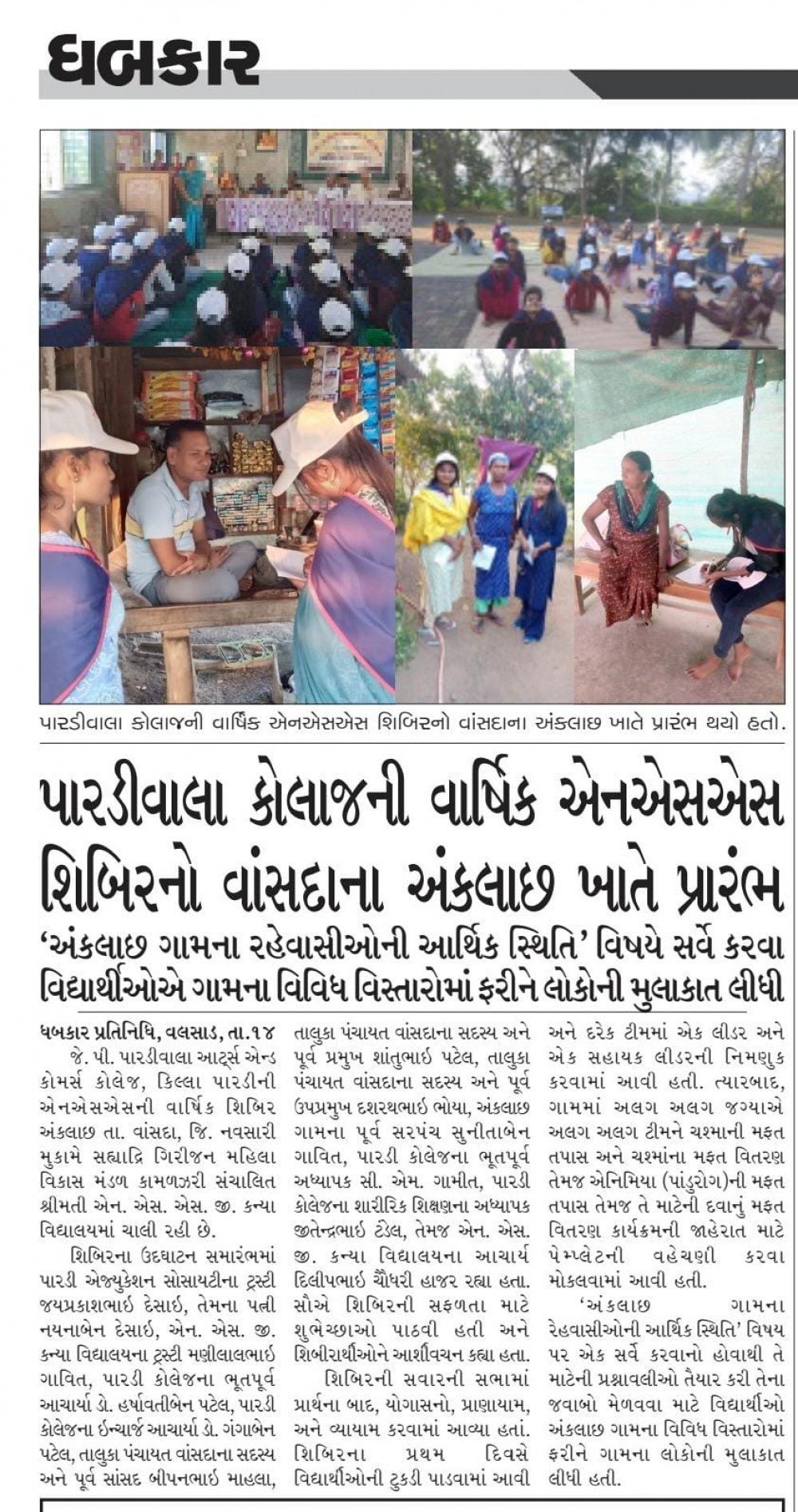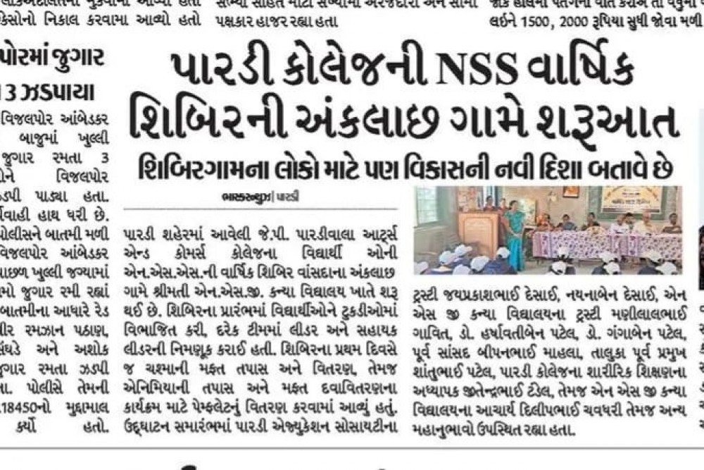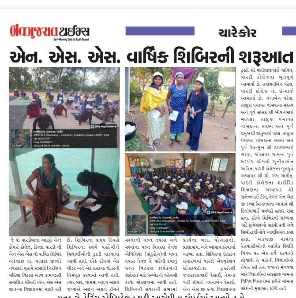 રાષ્ટ્રીય સેવા યોજનાના વાર્ષિક ખાસ શિબિરણું આયોજન તા- ૧૨-૧૨-૨૦૨૪ થી ૧૮-૧૨-૨૦૨૪ દરમ્યાન વાંસદા તાલુકાના અંકલાછ ગામમાં કરવામાં આવ્યું હતું.